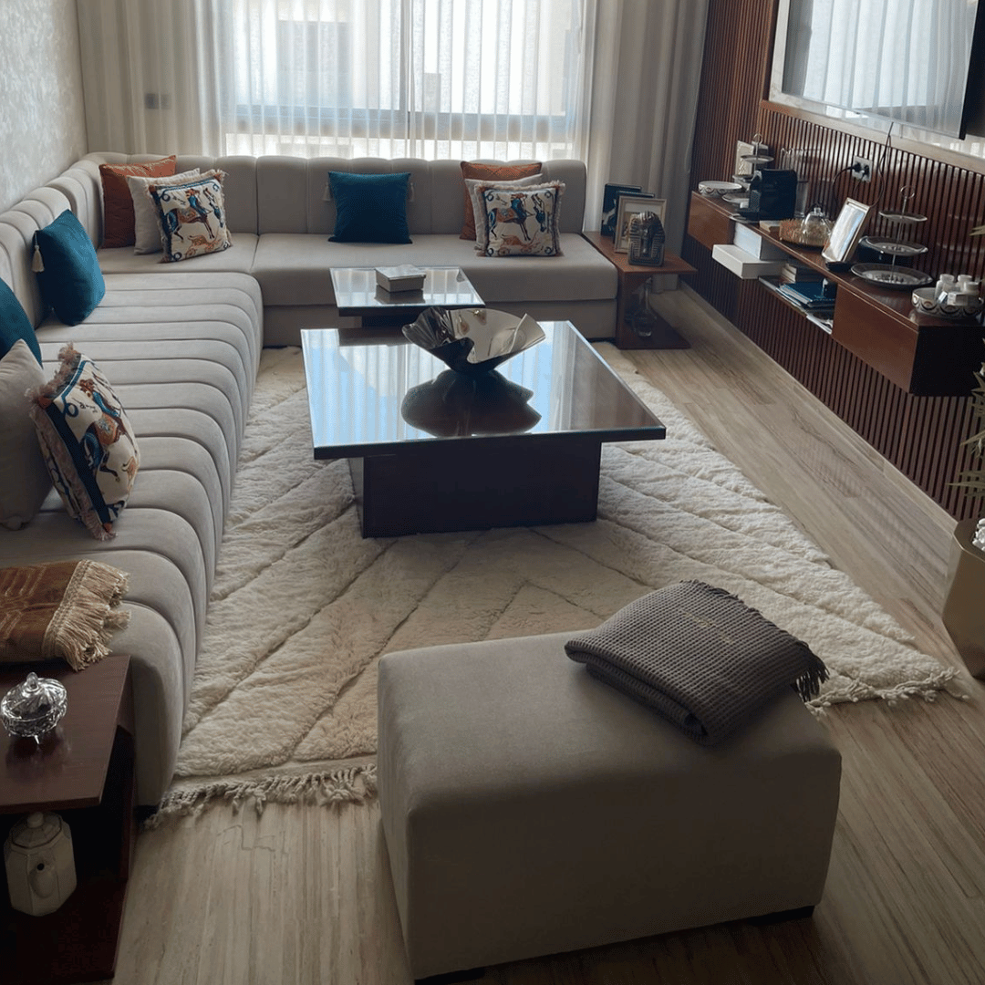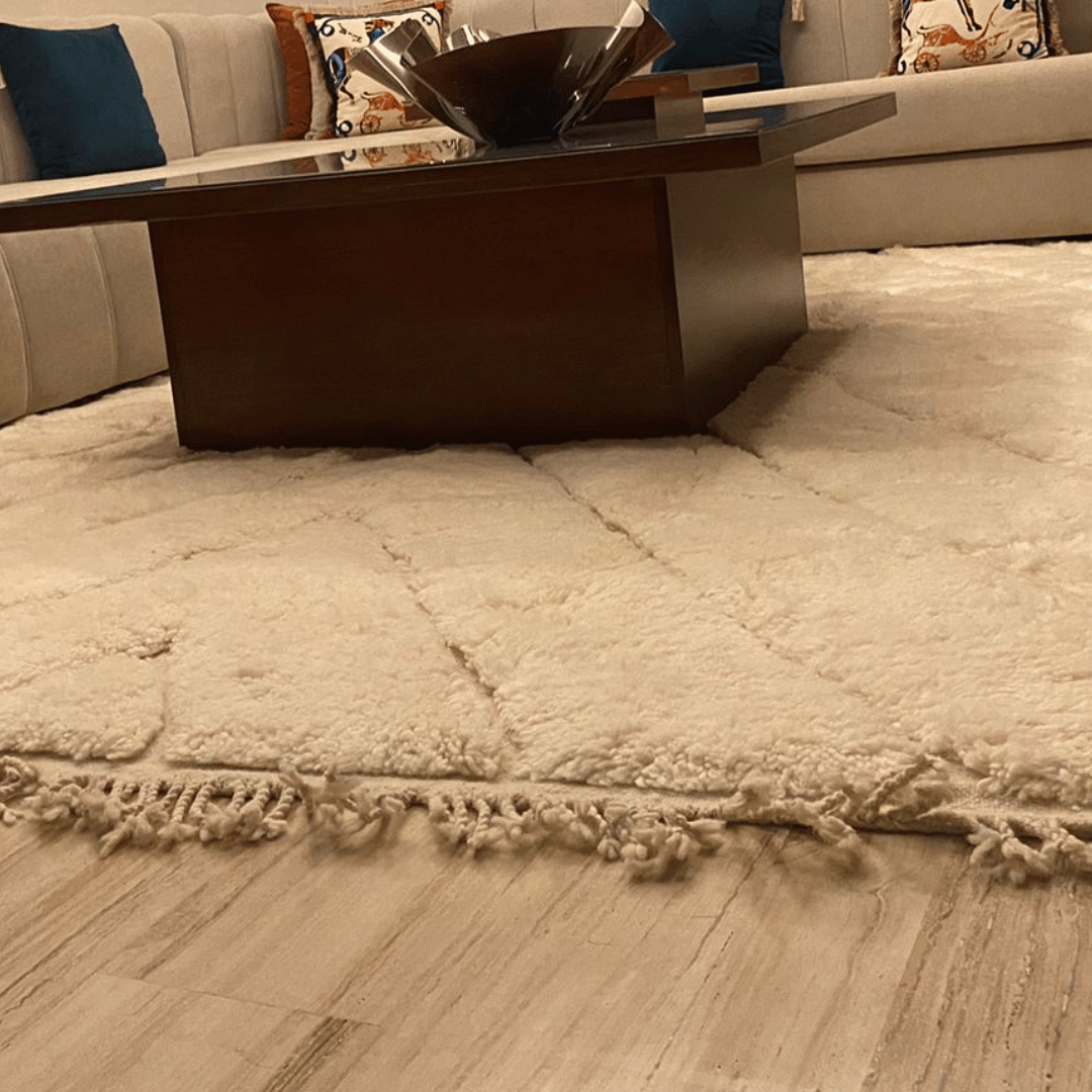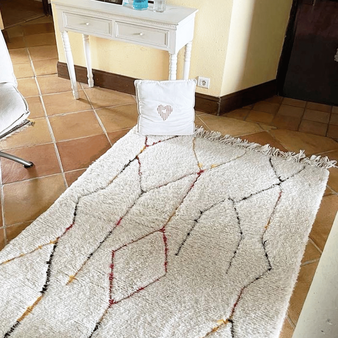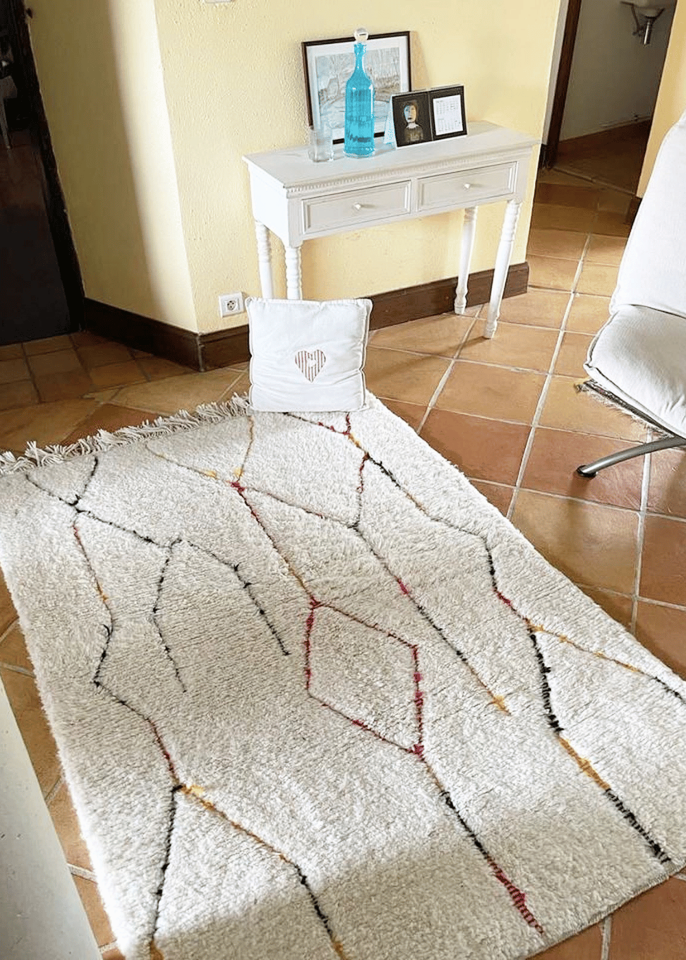 Votre tapis est confectionné à la main de manière purement traditionnelle et berbère. Il est fait à base de laine naturelle et traitée. Nous veillons à le laver également plusieurs fois pour l’adoucir et de le rendre agréable tant au toucher qu’à l’odorat.