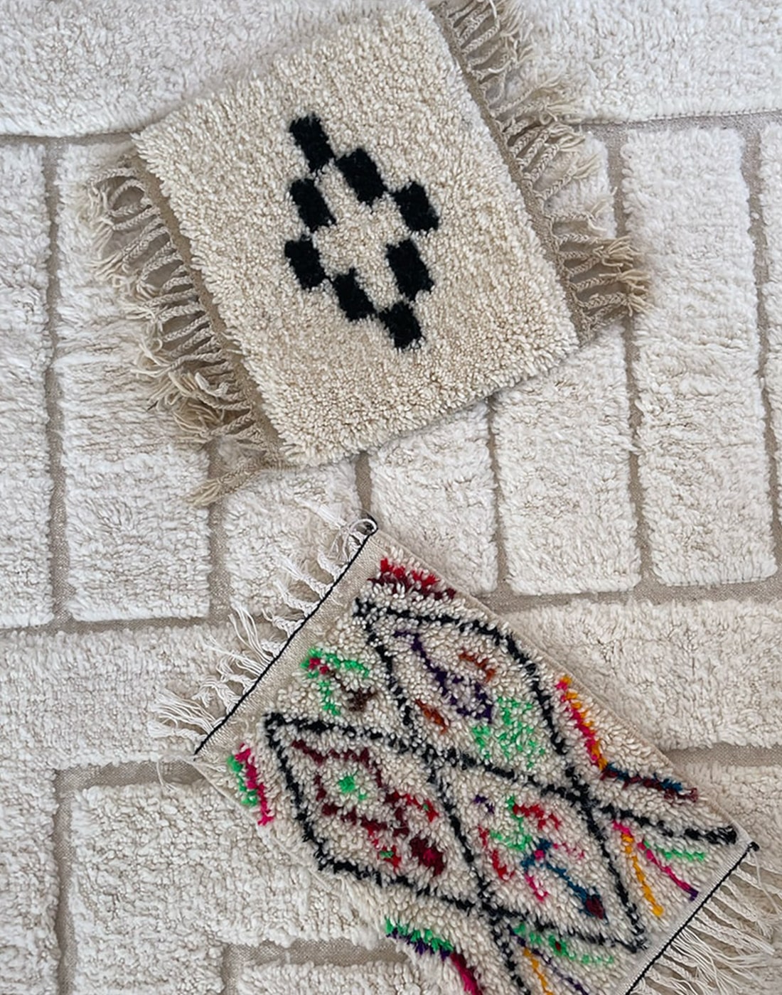 Nous vous mettons à disposition des échantillons de tapis Beni Ouarain. Ils sont identiques à ce que l'on retrouve dans un tapis et ils vont permettrons de juger :
