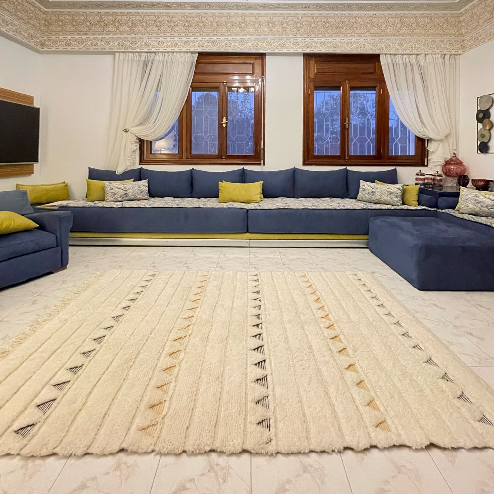 Tous nos tapis sont tissés à la main par des femmes tisseuses dans la pure tradition artisanale berbère. Ces pièces uniques sont autenthiques et apportent du confort.